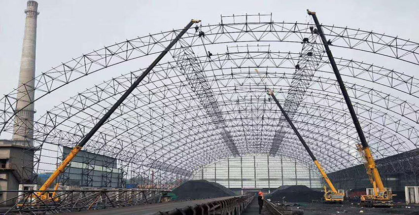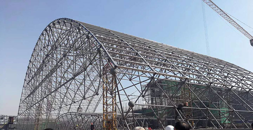 網(wǎng)架是由大量的鋼件按照不同的網(wǎng)絡形狀連接而成的網(wǎng)絡空間結構。一般網(wǎng)架的構成包括三錐體、三棱體、正方體等,再由這些基本的單元組成建筑的四邊形、六邊形或者其他任何形體。由網(wǎng)架搭建成的建筑具有空間受力小、剛度大、重量輕、抗震性能好等一系列的優(yōu)點。