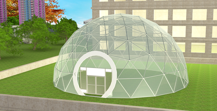 球型篷房小直徑4米,大直徑可達(dá)40米,采用的是球面網(wǎng)殼架構(gòu), 網(wǎng)殼是一種曲面型空間網(wǎng)格結(jié)構(gòu),兼具網(wǎng)架結(jié)構(gòu)和薄殼結(jié)構(gòu)的特點(diǎn),用材省,但受力性能相當(dāng)好,安全系數(shù)高,而且外形美觀、富于變化。