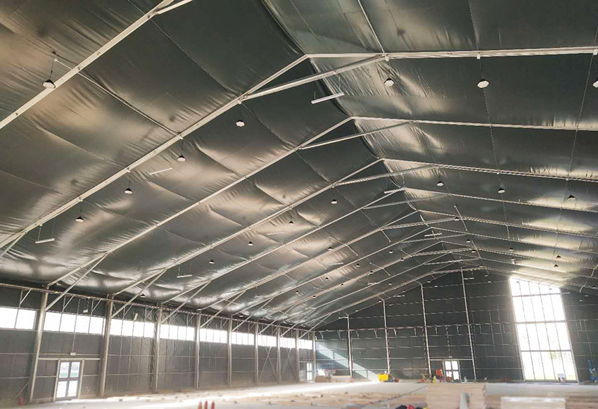 篷房和氣膜建筑的保溫材料可選用巖棉與玻璃絲綿,采用專用機(jī)械設(shè)備加工成保溫成品,防火等級達(dá)到A類。傳統(tǒng)建筑使用彩鋼瓦中間夾棉,現(xiàn)選用PVDF膜材與保溫棉相結(jié)合,增加了氣密性,耐酸耐堿耐腐蝕。