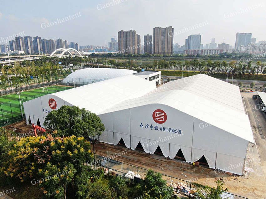 鋁合金裝配式篷房籃球場無需地基搭建,中間也沒有立柱,操作便捷且實用。采用模塊化的搭建方式,短期內(nèi)可得到使用。對于空間的規(guī)格、配套、結構、型材都是可以定制,滿足場館的空間需求,同時篷房屬于臨時建筑,審批流程相對于傳統(tǒng)建筑是十分簡易的。
