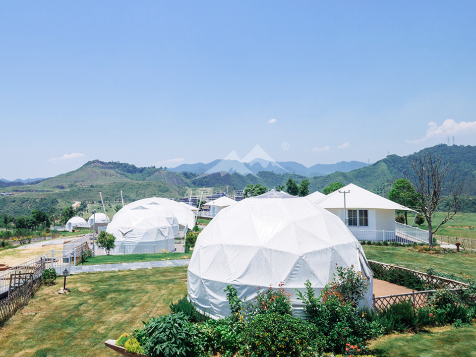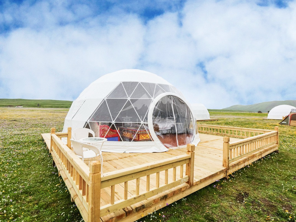 篷房采用高強度鍍鋅鋼管與850g/㎡雙面PVC阻燃篷布,抗風(fēng)等級達8-10級,抗震性能通過國家標準檢測。篷布具備防火(歐洲B1級阻燃)、防水、防紫外線功能,在-30℃至50℃環(huán)境下保持穩(wěn)定性,使用壽命可達20年。此外,球形結(jié)構(gòu)分散壓力,遭遇強風(fēng)或積雪時不易變形,安全性遠超普通帳篷。