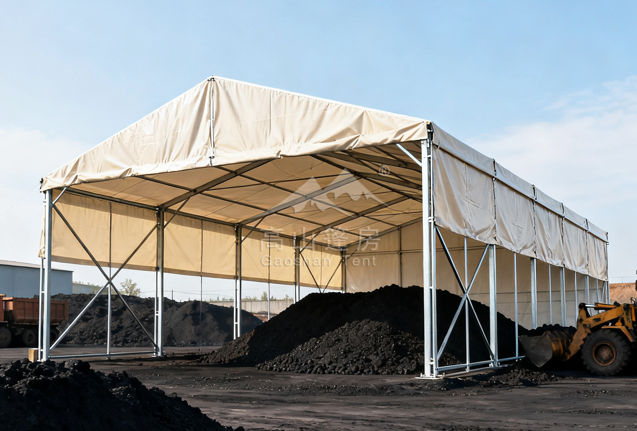 我們的篷房采用高強度鋼結構與高性能PVDF膜材,打造全封閉或半封閉的集約化存儲空間,從源頭上有效抑制煤炭粉塵的擴散,顯著減少物料損失,同時杜絕因雨水沖刷造成的土壤與水源污染,助您輕松達到嚴格的環(huán)保評審標準。
