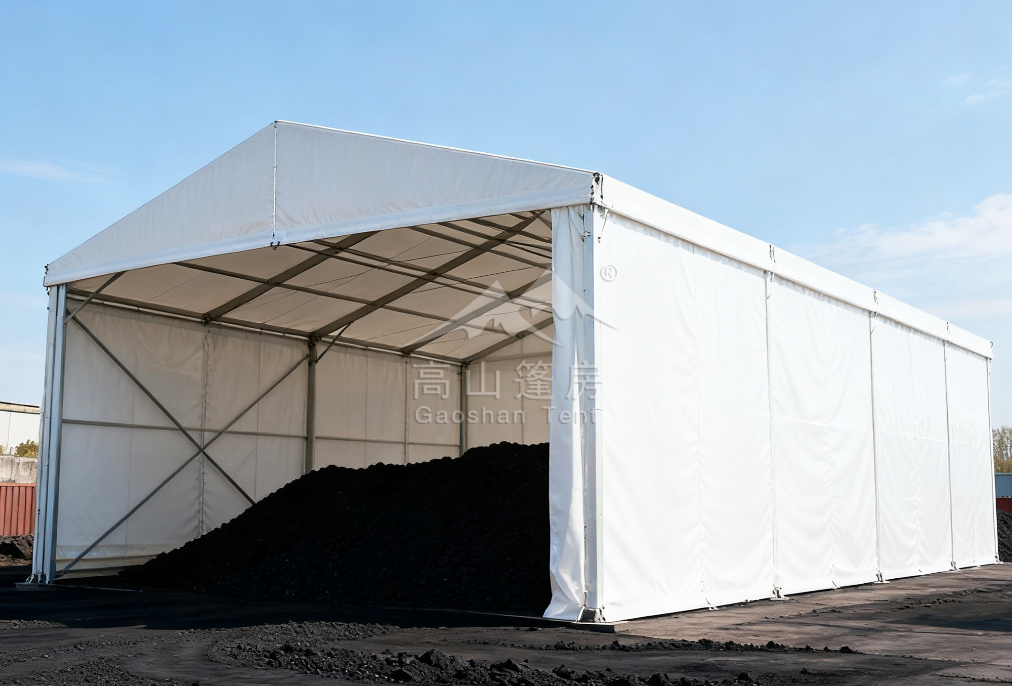 beyond環(huán)保效益,其大跨度無柱設計極大提升了空間利用率,實現(xiàn)堆取料作業(yè)的流暢高效;模塊化搭建方式讓建設周期大幅縮短,快速投產(chǎn),快速見效。篷房本身亦注重可持續(xù)性,主體結構可重復拆裝利用,完美契合綠色建筑理念。