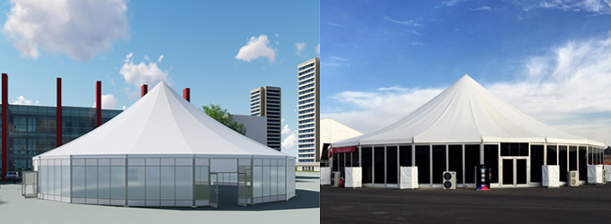 適合搭在較大地面上的多邊形篷房,造型別致,遠(yuǎn)遠(yuǎn)就能看見,且內(nèi)部空間寬敞,輕松裝下幾百個標(biāo)準(zhǔn)攤位,尤其適合北方地區(qū)的大型展銷會和集市。