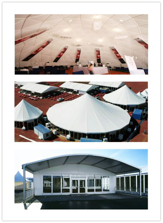 建筑的美感更多源于設(shè)計(jì)師對(duì)結(jié)構(gòu)和理念的把握。如何在展示和創(chuàng)新支撐下,為社會(huì)提供更多具備環(huán)境親和、應(yīng)用貼心和視覺(jué)愉悅無(wú)縫融合的室外車展篷房,是高山設(shè)計(jì)師不斷探索的新方向。例如高山多邊形篷房,用層次分明、富有節(jié)奏感的棚頂,配以晶瑩剔透的玻璃墻以及布幔、燈光,輕易營(yíng)造出高端大氣的“有氣場(chǎng)”臨時(shí)建筑;高山弧形篷房,通過(guò)優(yōu)美弧線的律動(dòng)設(shè)計(jì),營(yíng)造出移動(dòng)建筑稀缺的飄逸美感;高山球形篷房,為車展增添了更多的觀賞性。