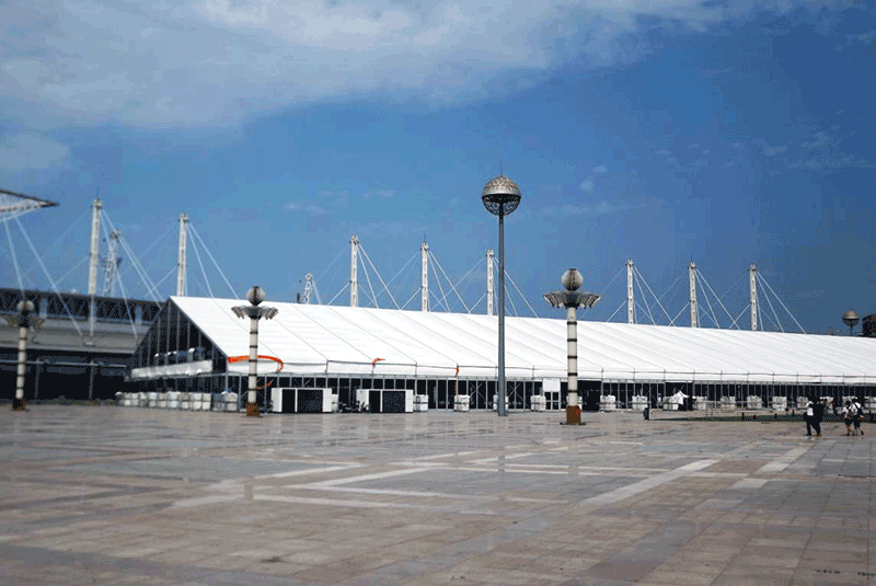 不挑地—— 篷房建筑地基簡(jiǎn)單,只需一塊平地即可建設(shè),不需要進(jìn)行復(fù)雜的地基施工。同時(shí)因?yàn)槭┕r(shí)間短,篷房主體和配套設(shè)備都是工廠化制造,現(xiàn)場(chǎng)組裝,不需要塔吊、腳手架和海量的土木運(yùn)輸,具備低噪音不擾民等特點(diǎn)。