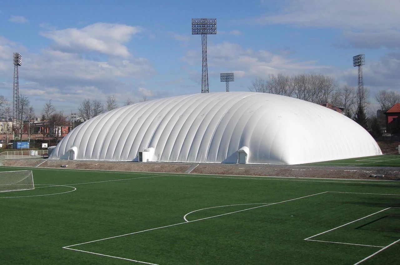 氣膜靠內(nèi)外氣壓差來支撐整個(gè)建筑,具有跨度面積大、靈活方便等特點(diǎn),氣膜形狀一般為常規(guī)的拱形結(jié)構(gòu),但隨著市場需求的變化,可量身定做滿足客戶需求的形狀,用于大型建筑,如體育館、航空港、候機(jī)大廳,工業(yè)廠房、倉庫等。