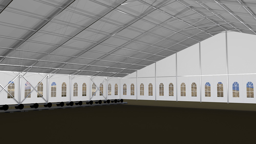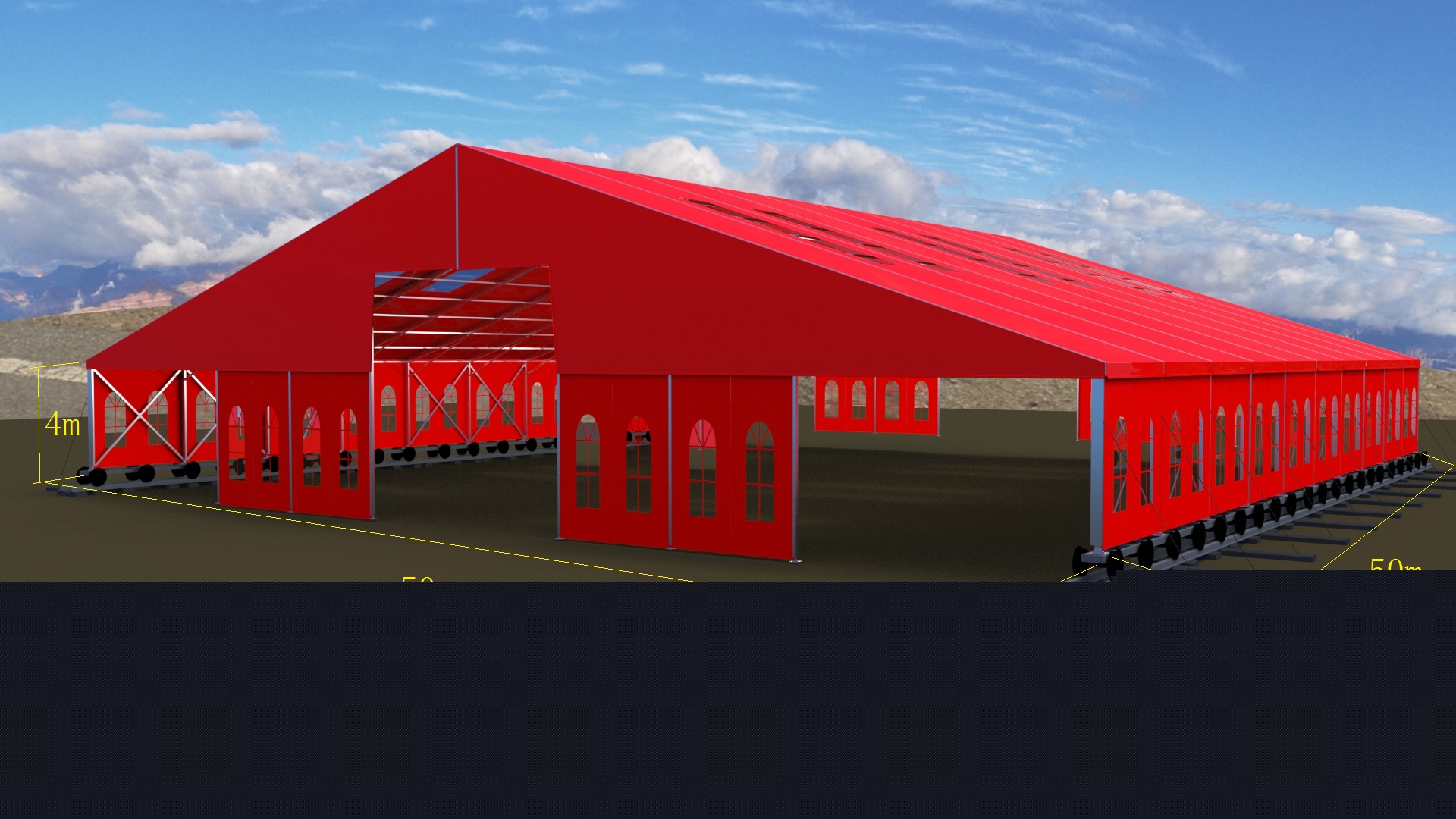 這種篷房建筑,高強(qiáng)度鋁合金結(jié)構(gòu),抗風(fēng)能力,載雪能力很強(qiáng)。根據(jù)國(guó)家要求,必須是可移動(dòng)結(jié)構(gòu),工程師們根據(jù)參數(shù)要求,采用礦輪承載方式,一座篷房建筑鋪設(shè)了兩條鐵軌的方式,實(shí)現(xiàn)了這個(gè)要求,國(guó)家環(huán)保部門,國(guó)土資源部門同時(shí)通過驗(yàn)收。